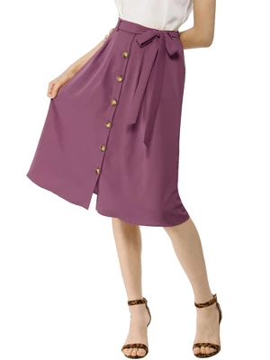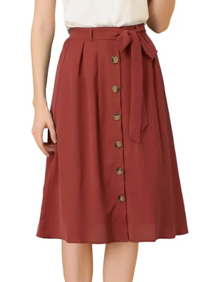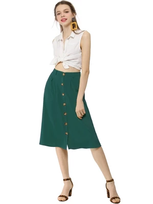 A vintage-inspired skirt destined to be your go-to on warm days is flared with pleats detail. With contrast buttons down the front in a wrap-over style, wear it with a tucked-in blouse and sandals for the warmer months. Designed to be versatile, this skirt delivers for both work and event wear this season.