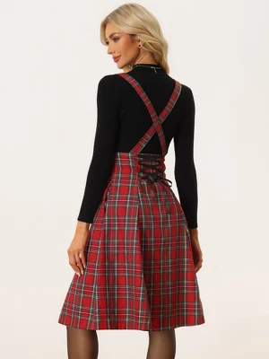 Elevate your wardrobe with this timeless A-line tweed plaid suspender skirt from Allegra K! Featuring adjustable suspenders and contrast plaid decor, this skirt is designed to fit all body types comfortably. Add a touch of glamour to your look with a stylish ankle boot and a fitted knit or a fancy tie-neck shirt.