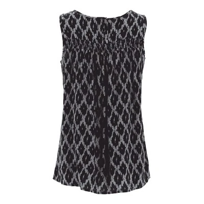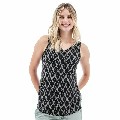 Aventura took the basic tank and elevated it, bringing you the Shosonna Tank Top featuring an all-over diamond-inspired print and ethical production at a Fair Trade Certifiedâ„¢ factory. For an effortless style, this tank features a deep v-neck, bra-friendly straps, ruching on the back yoke, and a button closure detail between the back of the shoulders. The tank drapes and feels like silk, making even the average summer day feel special. Luxurious on the skin, and easy on the mind: because this is a Fair Trade Certifiedâ„¢ product, a premium was paid to help improve and empower the lives of factory workers. Pair with Aventura’s Surfs Edge Short and your favorite sandals for an elevated beach-inspired look.