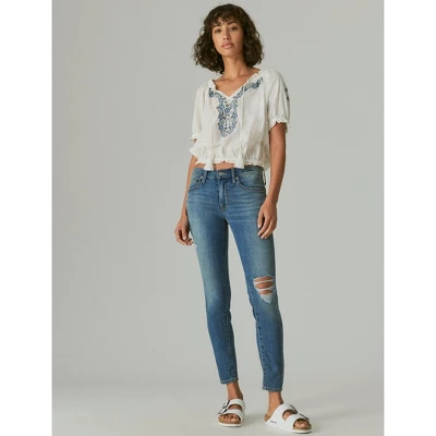 The Lucky Brand Women’s Mid Rise Ava Super Skinny Destruct is a great addition to any wardrobe. This represents great quality and style, with the care and attention that stays true to the rich heritage of Lucky Brand. Our Mid Rise Ava jean is a universally flattering, super skinny fit that cuts close to the body with extra stretch for easy movement. Finished with the just the right amount of distressing, this jean is the perfect everyday style.Mid rise with a skinny fit and skinny leg. Distressed medium wash denim. Advanced stretch for a comfortable modern feel in a high-stretch fabrication. 5-pocket styling with button-and-zip fly. Rise: 9 inches; Leg opening: 10 1. 4 inches (size 27)