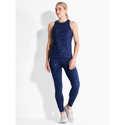 A workout ready tank that delivers elite performance and looks thanks to its on-trend high neck tank silhouette and eye-catching melange of bluess We made sure to start with the technical specs and gave it solid no-slip construction and a secure compressive feel. Made from our most technical FlexFit fabric that’s sweat-wicking, breathable, and totally sheer proof. Sits at the hip.