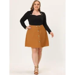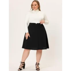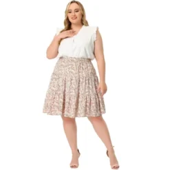 Agnes Orinda Women’s Plus Size Elastic High Waist Ruffle Hem Pleated Midi Floral Print A Line Skirts