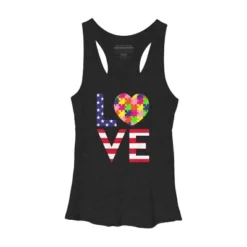 Women’s Design By Humans July 4th Love Flag With Puzzle Heart By Ujangkasep Racerback Tank Top