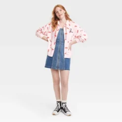 Women’s Sanrio Hello Kitty Bow Zip-Up Graphic Hoodie – Pink