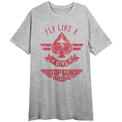 Fly like a girl…right into bed when you wear this ladies’ graphic sleep shirt! The big bold image has been professionally printed and applied so it will last long enough to get you through any adventure life throws your way. Made of 100% preshrunk cotton this athletic heather gray Top Gun: Maverick fan apparel features short sleeves for comfort and style on warm nights. It can be machine washed with like colors then tumble dried for easy care. As an officially licensed product this Fly Like a Girl t-shirt makes a great gift for any Top Gun or Air Force fan!