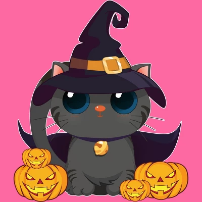 - Add some magic to your wardrobe with this cute Halloween design featuring a black cat wearing a witch hat and clock surrounded by jack-o-lanterns.