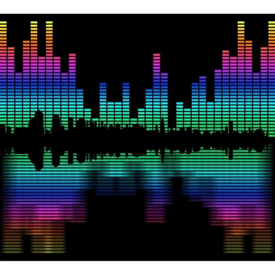 - Pump up the jams with this cool design featuring rainbow music bars and their reflections creating a cityscape silhouette