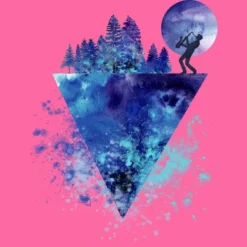 - Take your wardrobe one note higher with this beautiful watercolor design featuring the silhouette of a saxophone player in the moonlight, standing on a triangle cliff near a forest of trees.