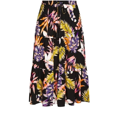 Introducing the Paige Print Skirt. With a maxi hem, tiered design, and tropical print, you can mix and match this number with any ensemble. Plus, the drawstring and elasticated waistband adds a functional touch. Bold and fiercely fashionable, no one does plus size fashion like City Chic. Loved around the globe for its diverse range of fashion-forward styles for any occasion. From show-stopping evening gowns to workwear and casualwear, City Chic will take your style to bold new heights. Available in sizes 14-32.