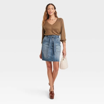 Keep your look comfy and stylish from movie nights to weekend brunch with this Denim Utility Skirt from Knox Rose™. This above-knee denim skirt is made of midweight fabric for breathable comfort throughout your day, while the full-elastic waistband with tie closure helps you find a secure fit. Plus, front pockets add functional detail to your look. Showcasing allover stitched detailing for a stylish look, simply pair this skirt with your choice of top and footwear to create a variety of cool looks.